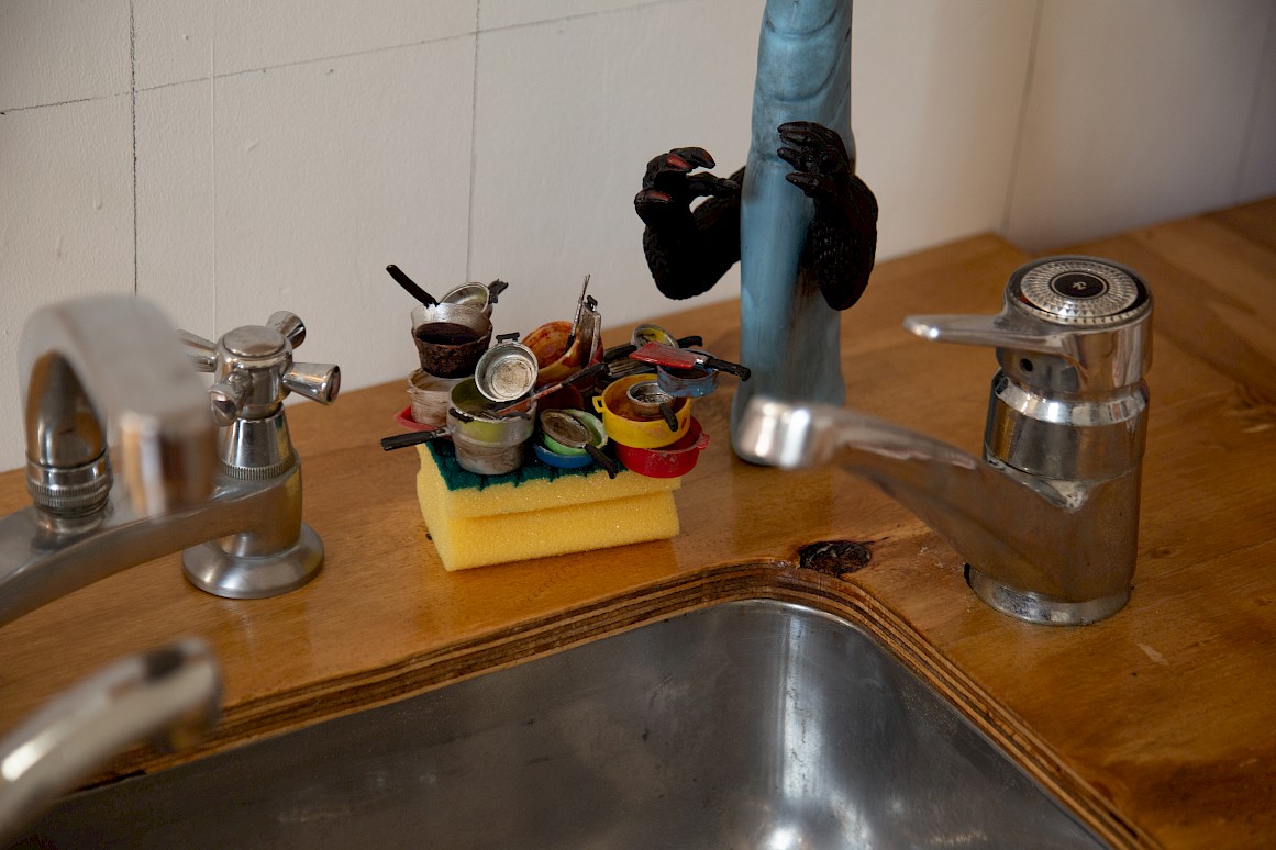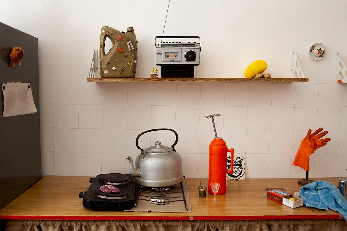 El sueño de montar una cocina para homenajear a todas las brujas empieza con operaciones absurdas con el material. La cocina también es un hospital de los objetos: donde van a curarse, de donde vuelven cambiados.