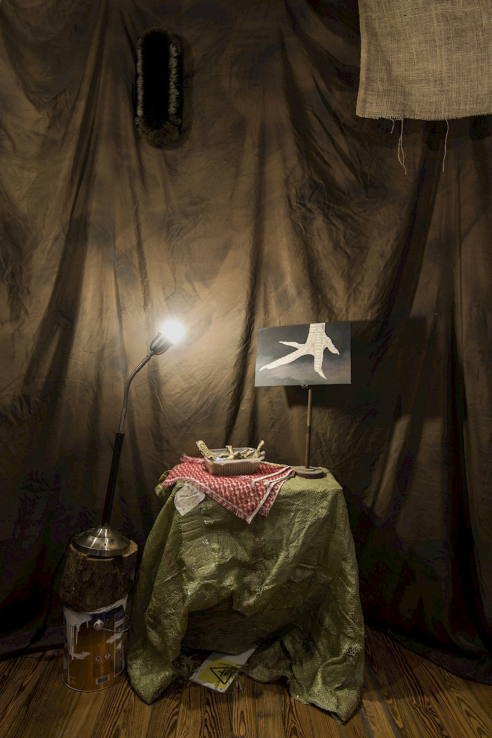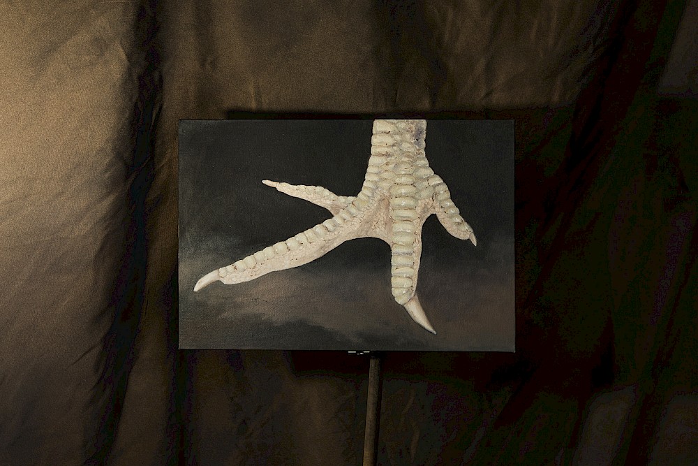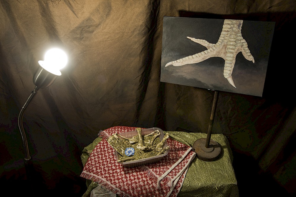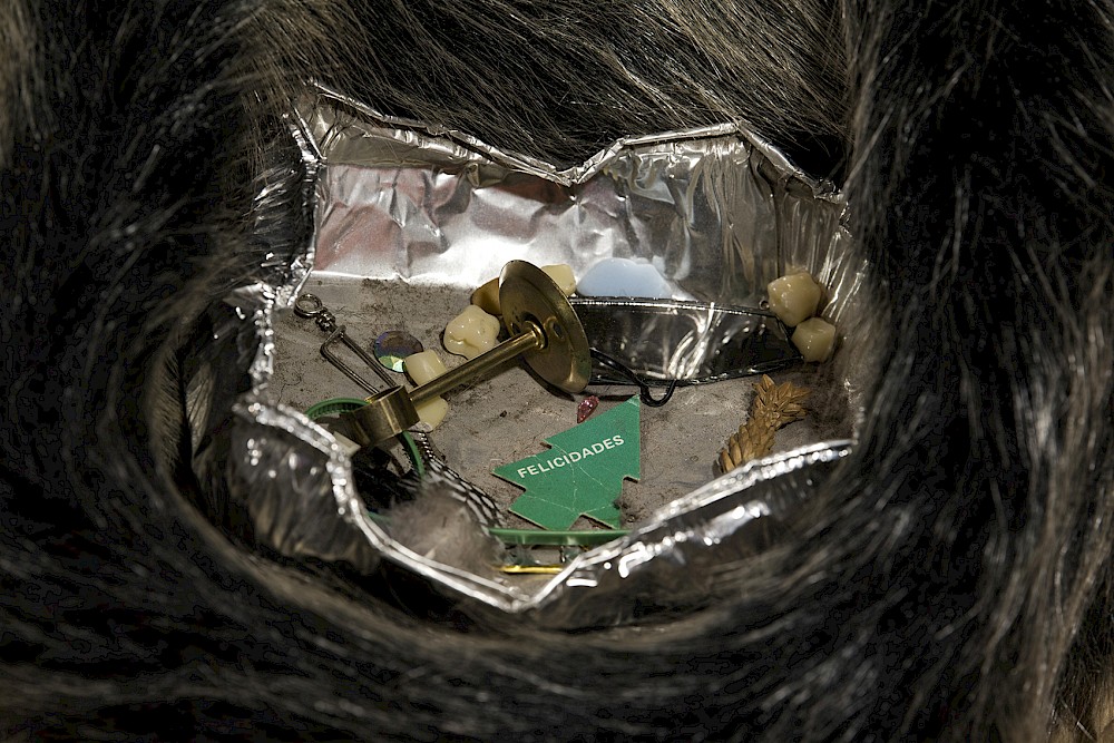 Lola Granillo ofrece “Alojamiento de cosas” en unas heladeras exhibidoras que acomoda en fila en el living de su casa. Mi mamá le alquila una heladera para guardar flores tropicales, y Aylu hace lo propio para guardar una obra suya. Es una obra sonora pero se ve así: Un reloj digital y varias naranjas con brillo ochentoso, flotando y girando sobre sus ejes en la oscuridad. Le pregunto a Lolo “dónde está el toque local?” En seguida presiona un botón y las naranjas aparecen peladas y por ende más latinas.